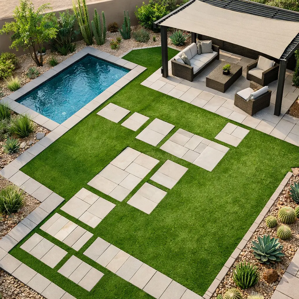 From modern gardens with fake grass to pet-friendly play zones and poolside lounge areas, artificial lawn solutions in Mesa, AZ provide a versatile foundation for any landscape design. Whether you’re upgrading a small yard or planning a full renovation, synthetic turf in Mesa can be customized to match your layout, lifestyle, and long-term maintenance goals.