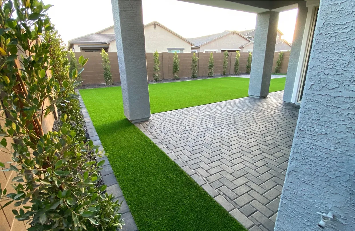 Transform your yard with professional landscaping services in Arizona’s East Valley. From desert landscaping to full backyard designs, White Rhino Turf installs rock, plants, lighting, and ground cover that thrive in Arizona heat. Our licensed in-house crews deliver clean, on-time installs, backed by warranties and 0% financing for 24 months.